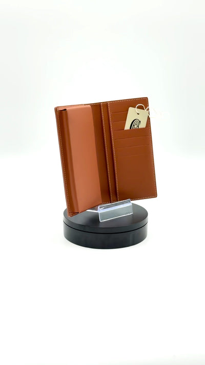 A refined long-wallet from Maison Goyard that blends elegant form with practical function. Crafted in the iconic Goyardine coated-canvas with calfskin leather trim and a refined goatskin lining, this piece accommodates cards, notes, a phone and more—all in a sleek, slim profile.